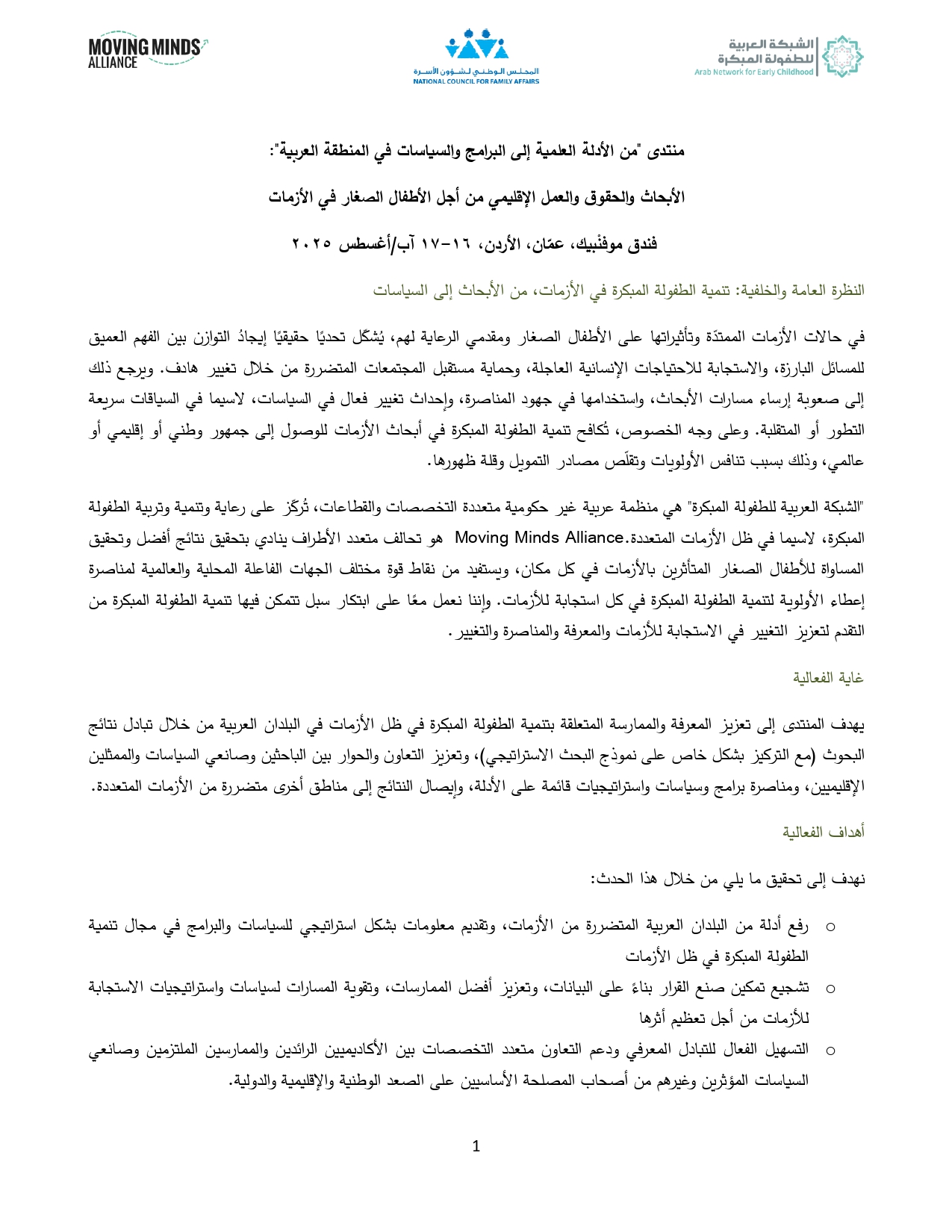 المنتدى الإقليمي الأول حول بحوث الطفولة المبكّرة في الأزمات